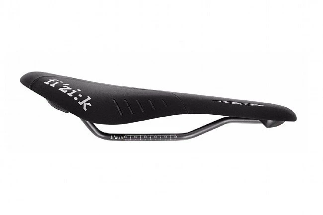 Arguably the most versatile shape in the Fi’zi:k line, the Antares draws on features from the popular Arione and Aliante models. The Antares R3 manages an even balance of weight savings and comfort. The Composite glass co-injected Nylon WingFlex shell is light and flexible. The Wing-Flex sections allow the shell to move at the thigh contact points and provides stiffness and support where needed for long-term comfort and pedaling efficiency. The Antares models have a large contact area, reducing pressure points and allowing for a variety of rider positions. Above the shell is a high density foam composite for cushioning and support. The material offers substantial rebound, extending the saddle’s service life. Alloy K:ium rails offer an outstanding combination of weight savings and strength.