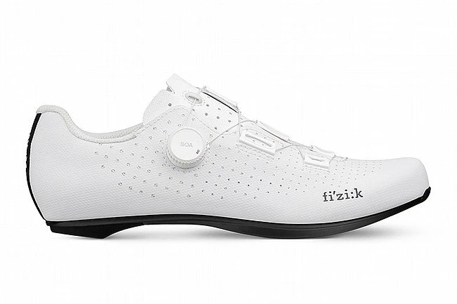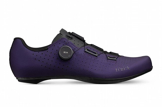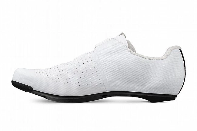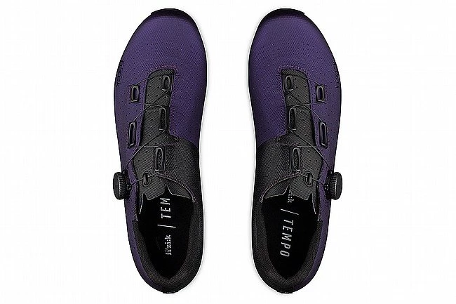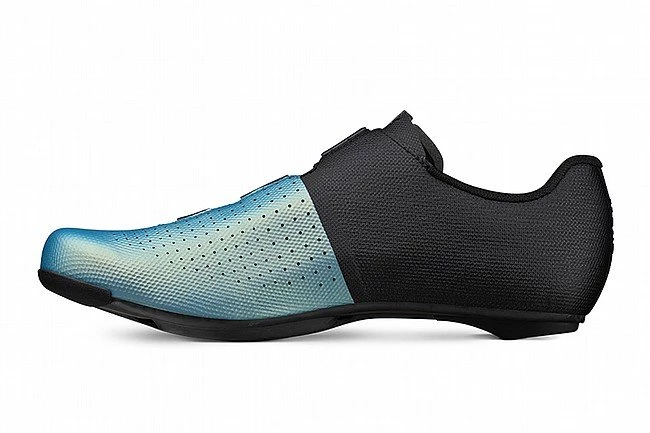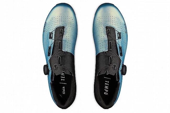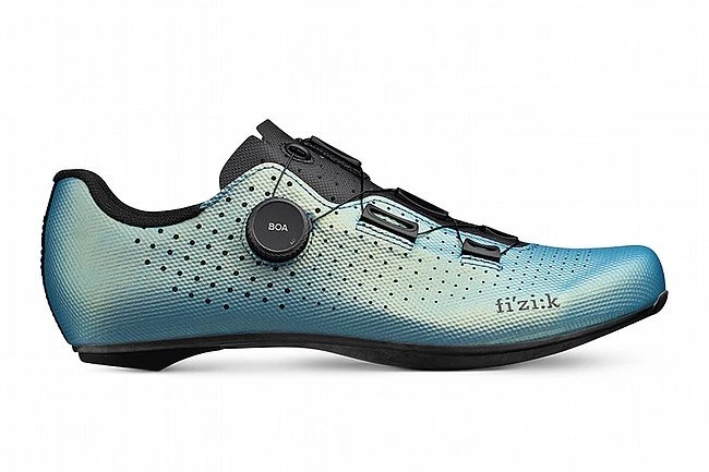 At the base, the R2 outsole’s engineered carbon fiber layup saves weight and delivers increased stiffness, with a stiffness index rating of 10, making this outsole the most responsive in the fizik range. A wide vent inlet and deep internal channeling provide cooling airflow, aiding in temperature regulation. The cleat positioning is set slightly further back compared to traditional settings to optimize pedaling efficiency and reduce knee compression—especially well-suited for very aggressive, forward aero positions.