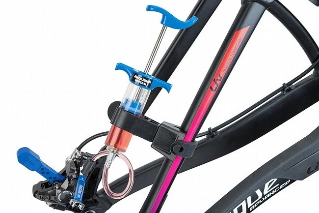 - Includes two syringes, hoses with shutoff clips, multi-size bleed blocks, bleed funnel and attachable syringe mount