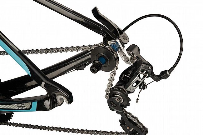 - Works with both with open dropouts or thru-axle frames up to 12mm