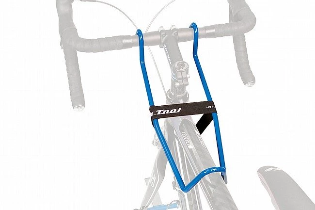 Keeps the handlebars and front wheel in place when bike is mounted in a repair stand. Fits bars up to 32mm outside diameter and top tubes up to 50mm in diameter. Vinyl coated so it will not scratch precious paint.