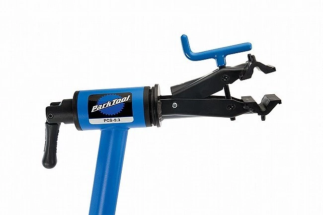 The main upgrade found on the PCS-9.3 (as opposed to the PCS-9.2) is the addition of a spring button that prevents the legs from folding once the stand is fully upright, even if the adjustment knob is not properly tightened. The clamp and jaw covers have also been revised to allow for more secure engagement on tubes as small as 7/8″, which would include most dropper posts. Several internal parts are also upgraded to be stronger and allow smoother operation.