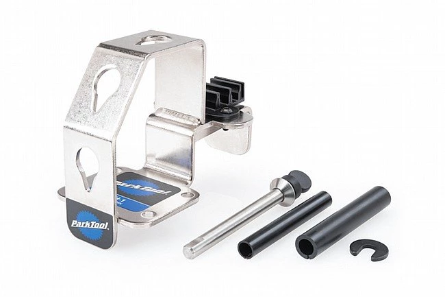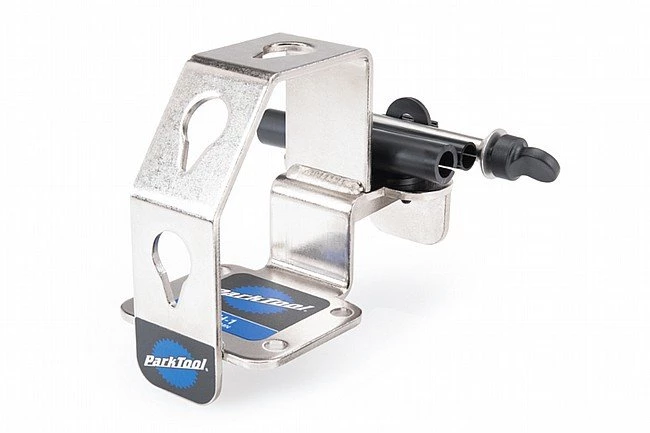 No more need to hold wheels between your knees, balance on a bench top or ask for help. The Park Tool WH-1 Wheel Holder firmly holds thru axle and quick-release wheels at three convenient positions. It’s like having a strong helper to hold wheels during cleaning, tire and tube work, hub work, cassette work, and tubeless installation. The WH-1 can be bolted or clamped directly to a bench or installed in a bench vise.
